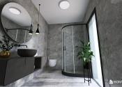 Kúpeľňa (6,76 m²) so sprchovým kútom, dvoma umývadlami a WC.