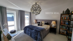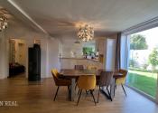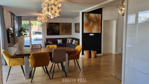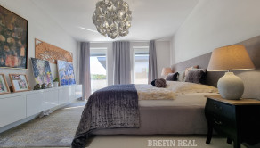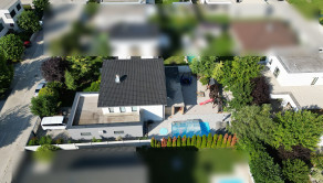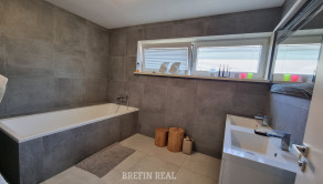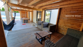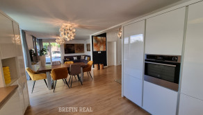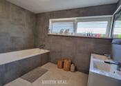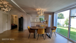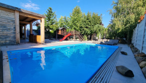 Tento dom ponúka nadštandardné bývanie s dôrazom na komfort, kvalitu a moderné technológie. Tehlová konštrukcia a škridlová strecha zabezpečujú dlhú životnosť, tepelné čerpadlo úspornú prevádzku a bazén so slanou vodou predstavuje ideálne miesto na relax. Vysoký bezpečnostný štandard (alarm, brána na diaľkové ovládanie) dopĺňajú prémiové kuchynské spotrebiče a moderné úložné riešenia.