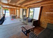 Prestrešená terasa za domom na príjemné posedenie, grilovanie