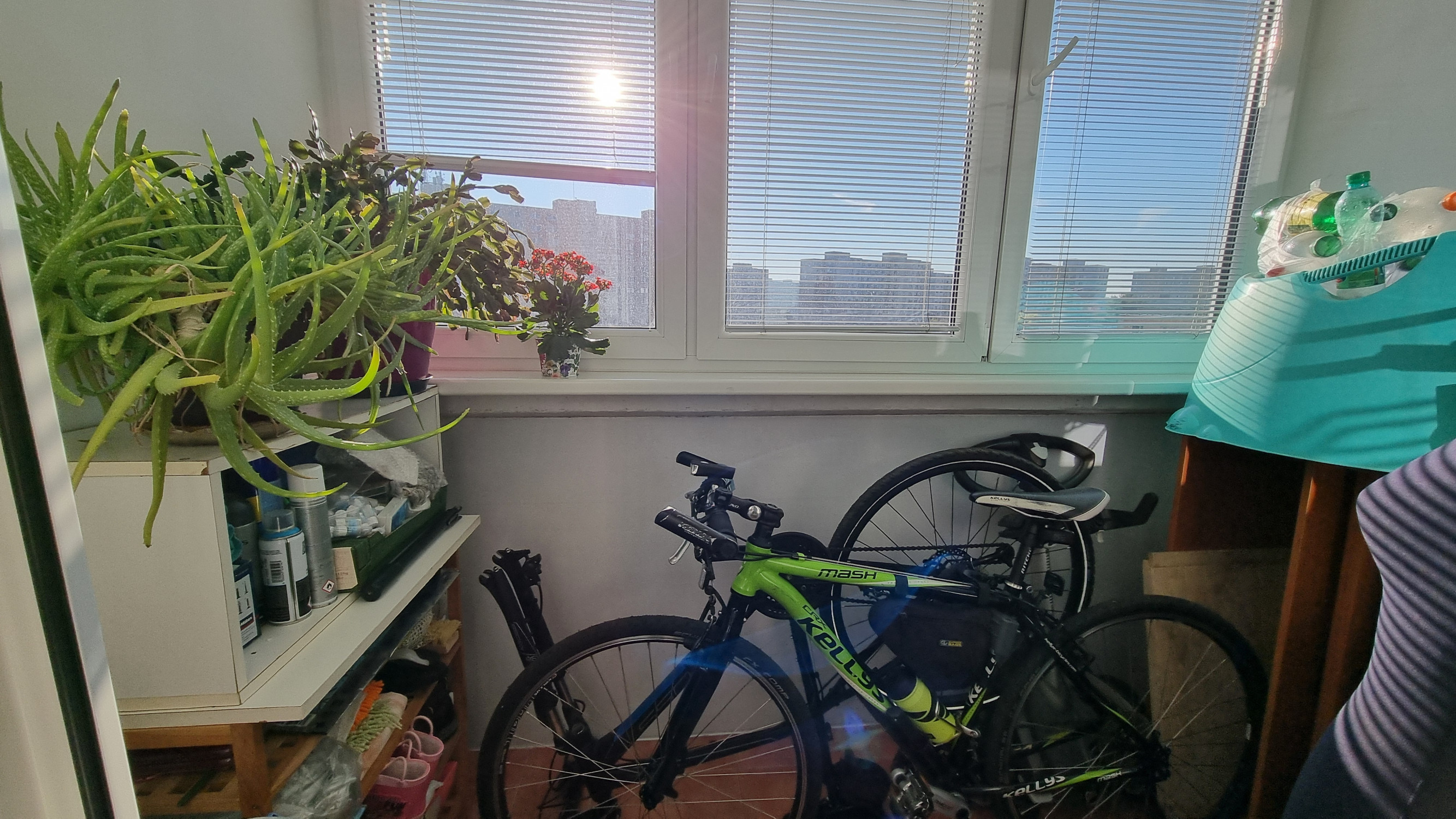 Loggia je zasklená, v byte sú plastové okná s vnútornými žalúziami na juho-východnej strane a vonkajšie plastové žalúzie v spálni a detskej izbe (severo-západ).