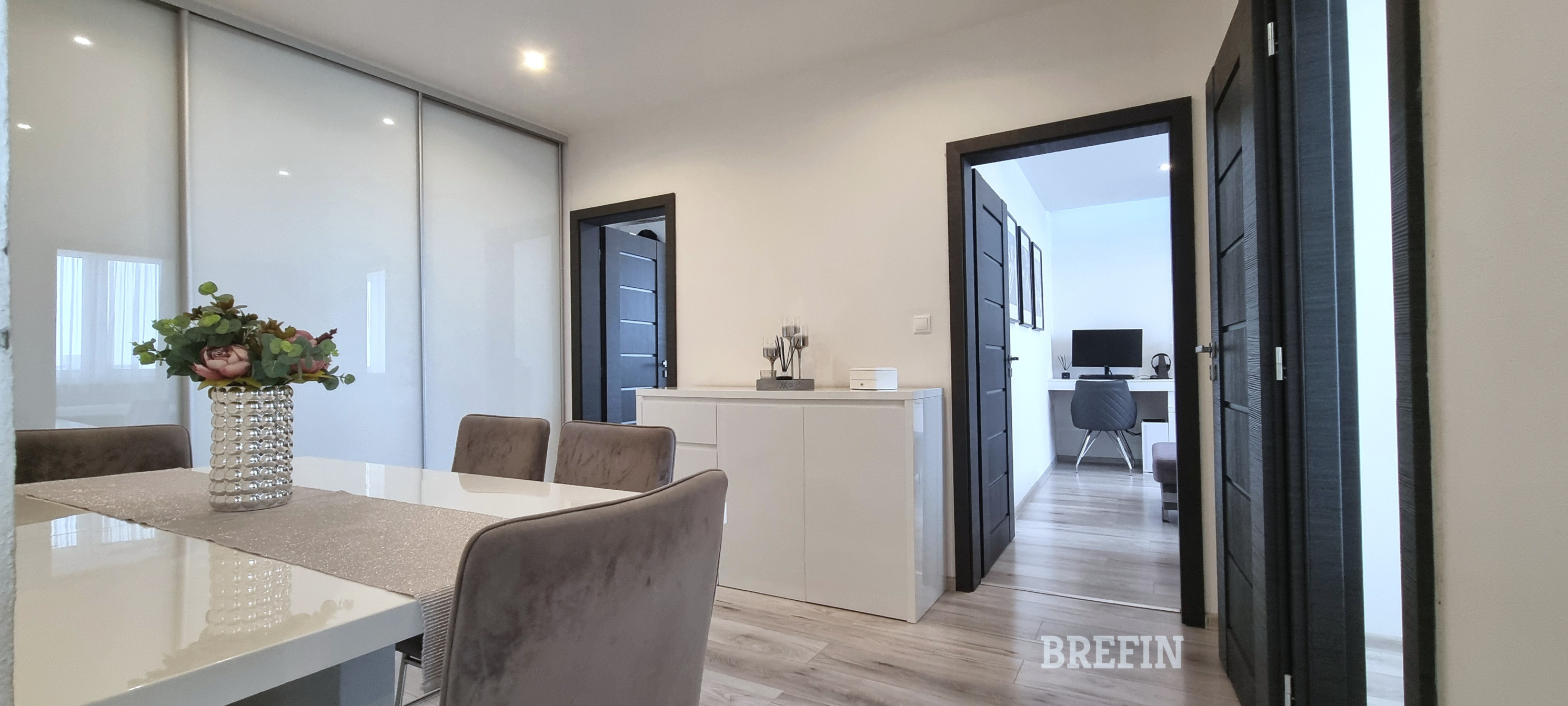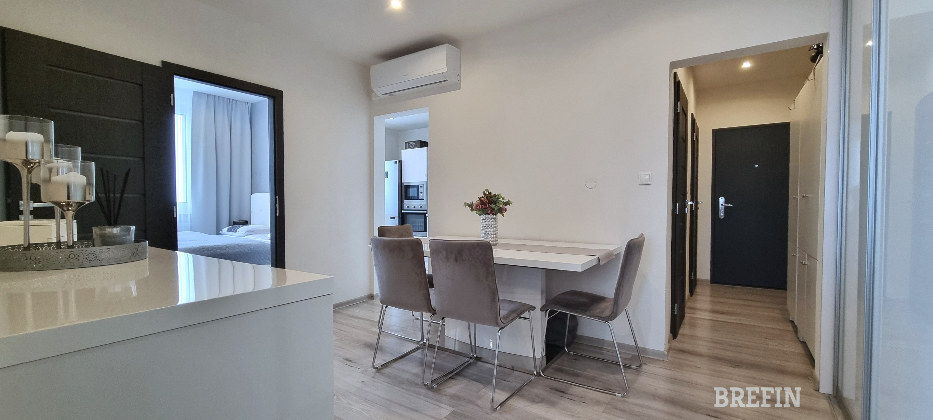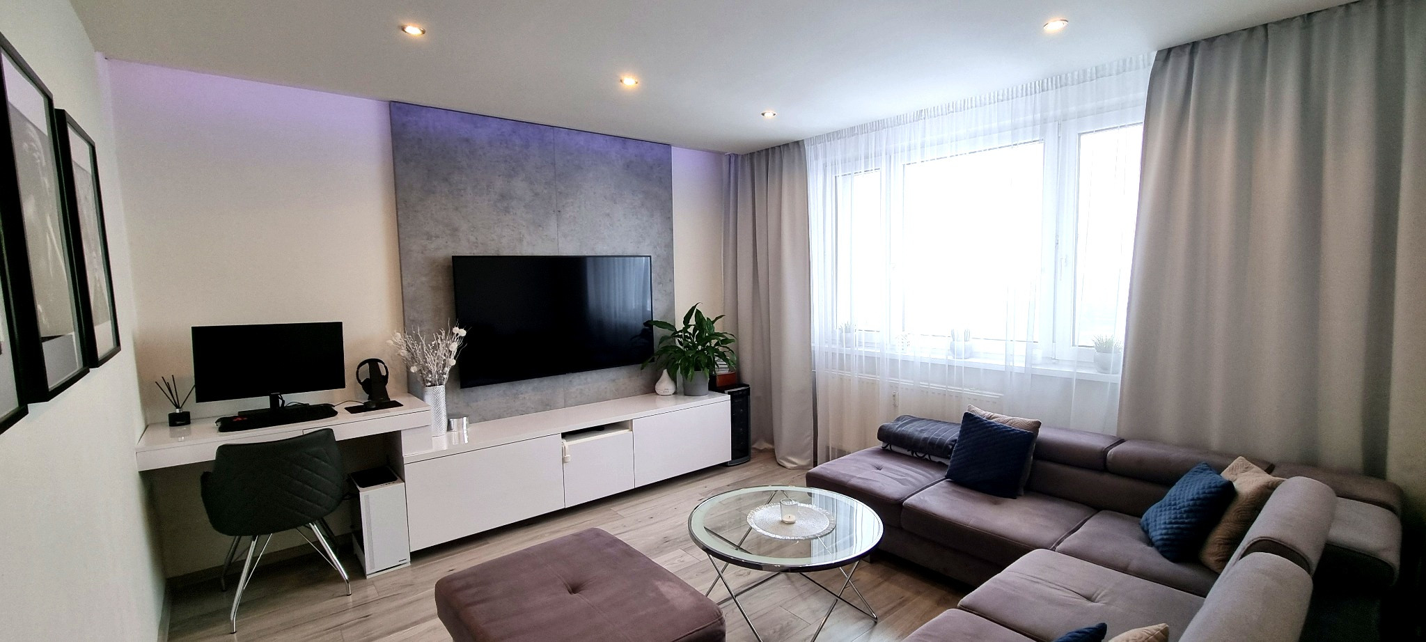 Byt je svetlý, moderný a udržiavaný, ideálny pre rodinu aj pár, ktorý chce bývať bez ďalších investícií. Dispozične je riešený prakticky – loggia je prístupná z kuchyne, kúpeľňa a WC sú samostatné. Byt pôsobí veľmi čisto a moderne + má dostatok úložného priestoru.
