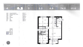 Celková výmera bytu vrátane príslušenstva je cca 77 m², pričom súčasťou je aj loggia a pivničná kobka.