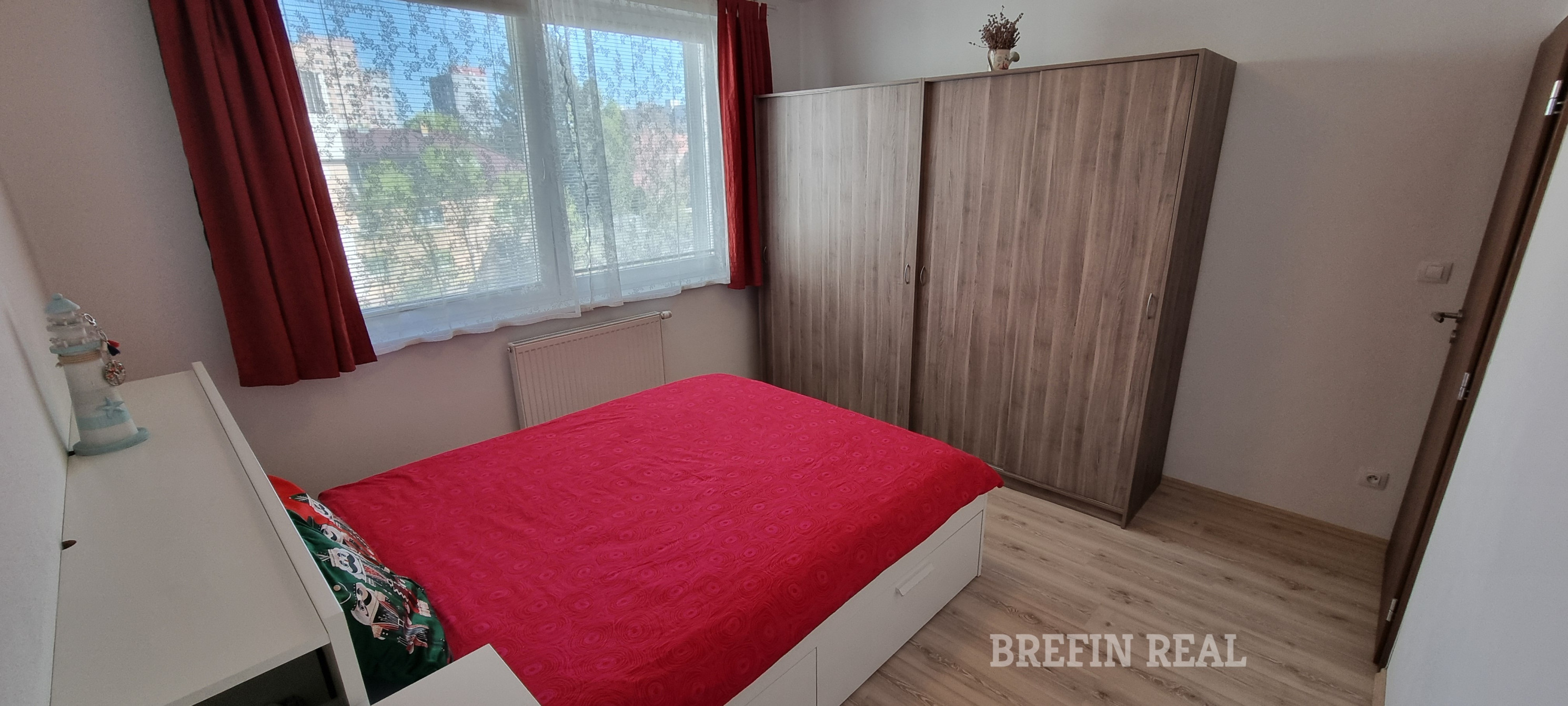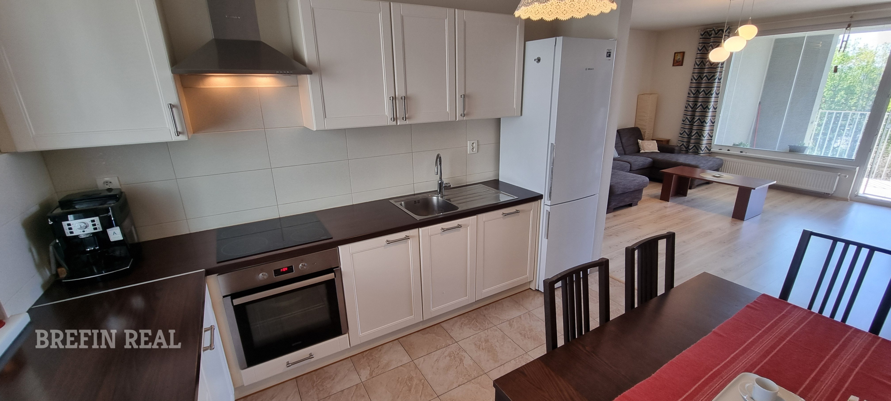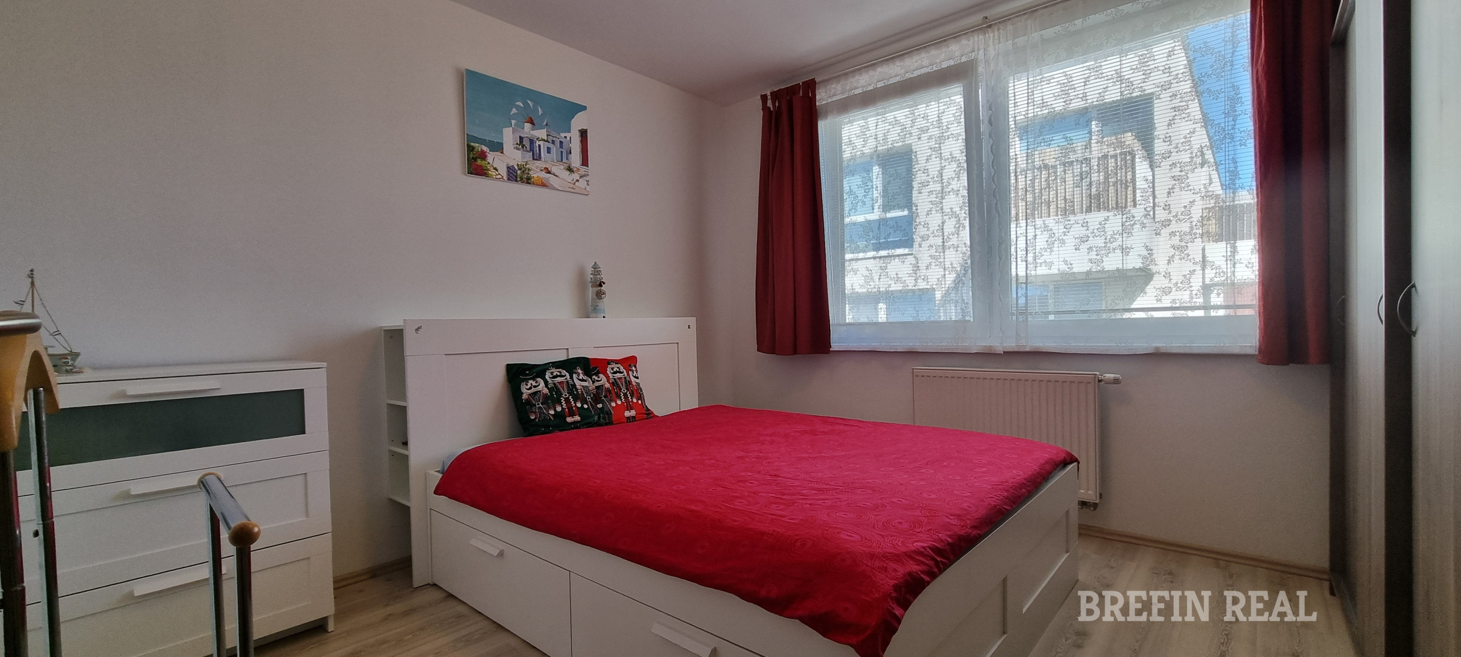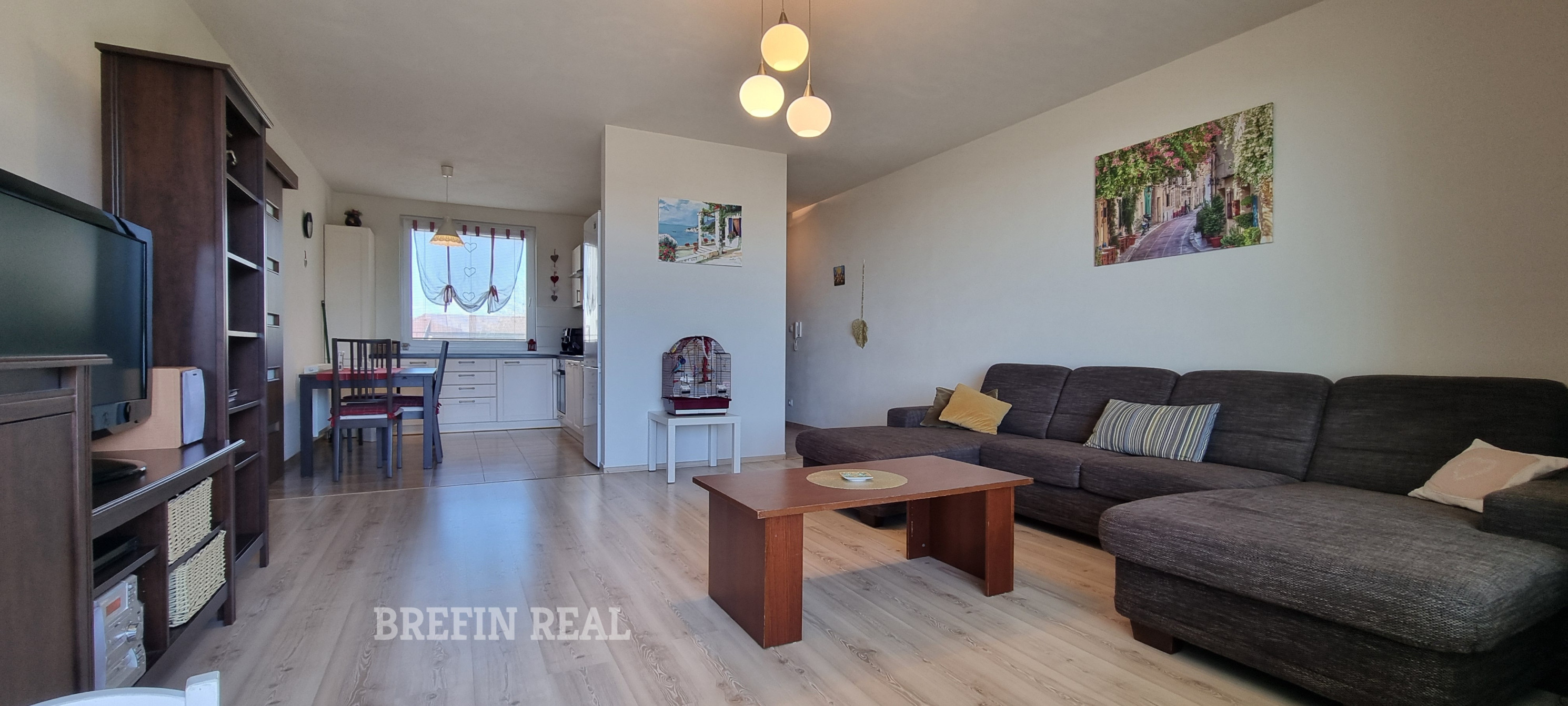 Dispozične je byt veľmi dobre riešený – denná časť (obývačka s kuchyňou) je oddelená od nočnej časti.