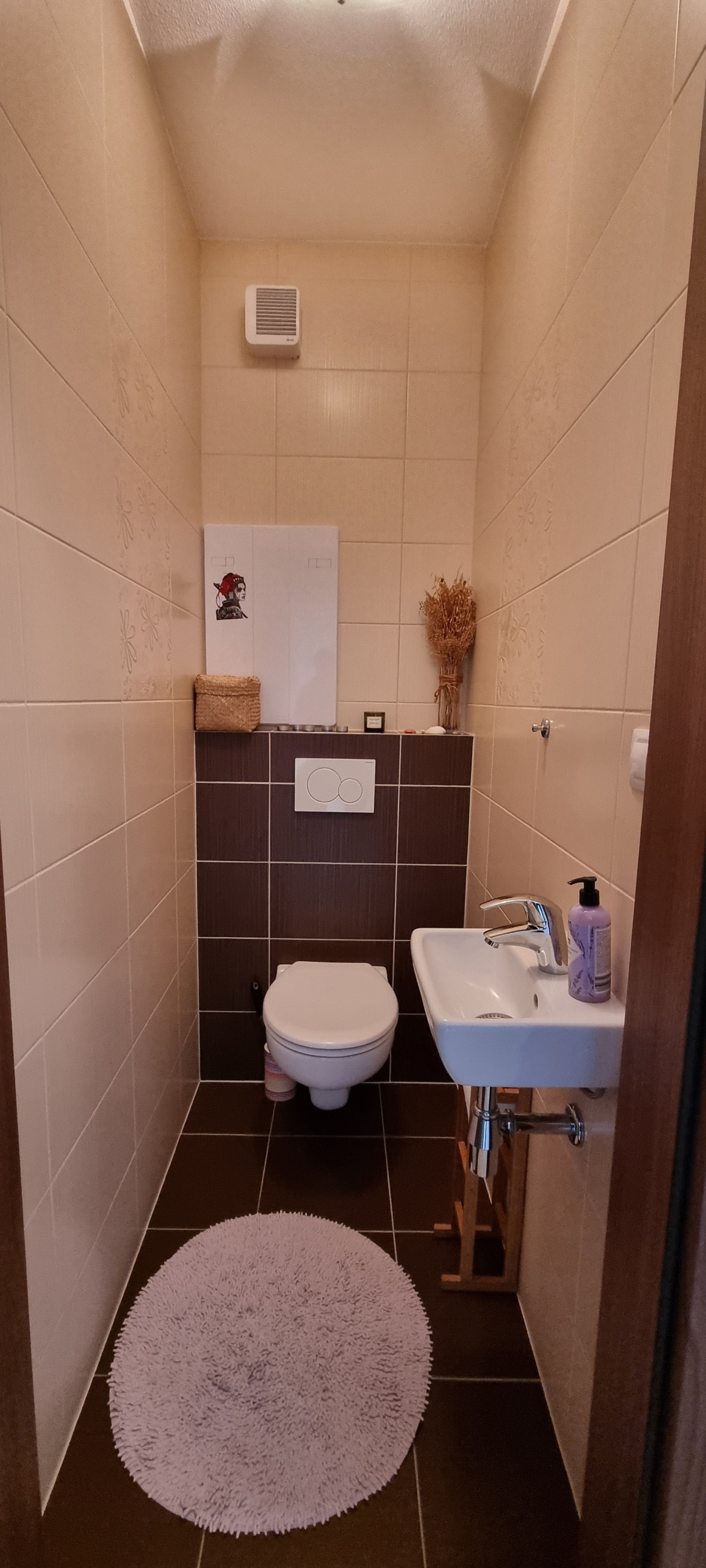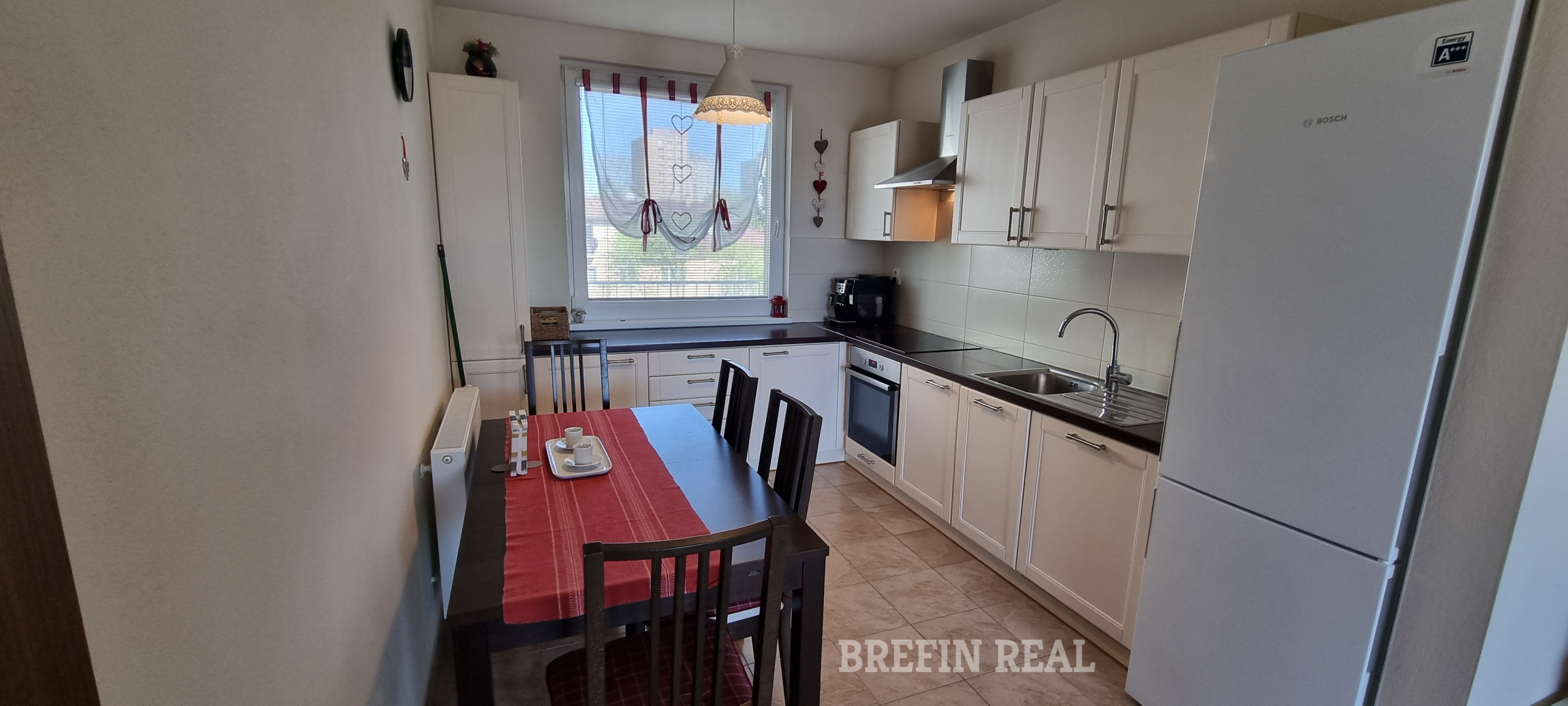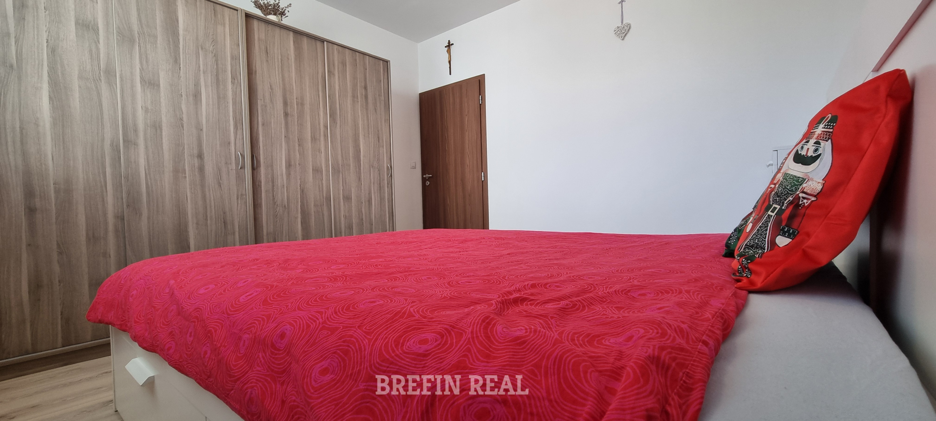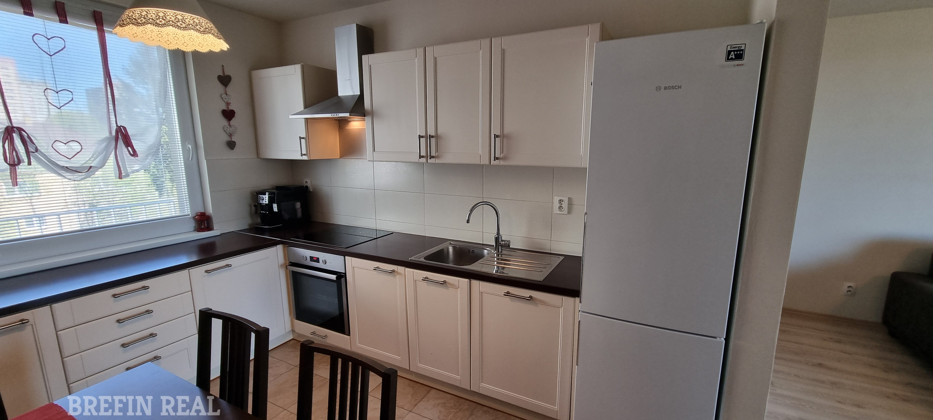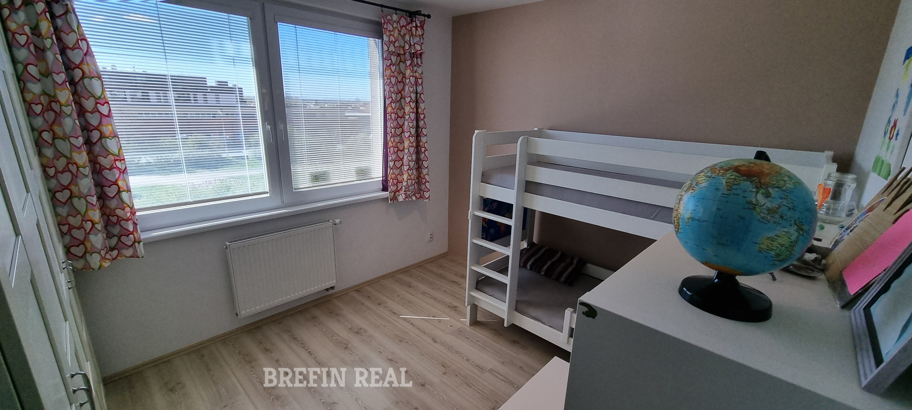 Dispozične je byt veľmi dobre riešený – denná časť (obývačka s kuchyňou) je oddelená od nočnej časti.